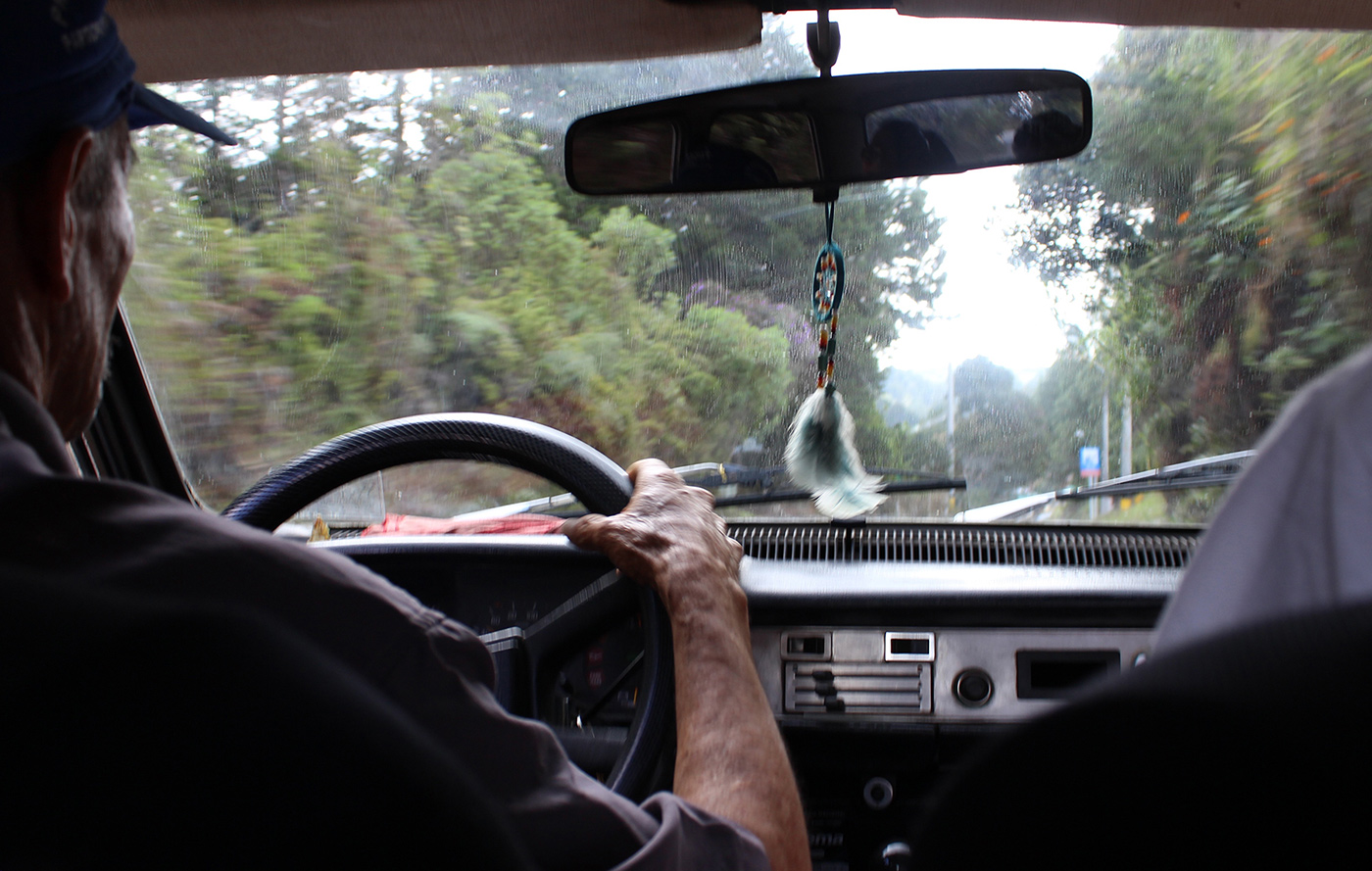 Except in Santa Elena, there isn't really such a thing as taxis. They are more just like people who live there that need to make a little extra cash. Our "taxi" turned out to be a rugged sedan: Make-unknown, transmission-standard, manual locks and windows and as you can see a super high-tech dock. Every now and then the car would cough up a storm of ? but somehow continue running.